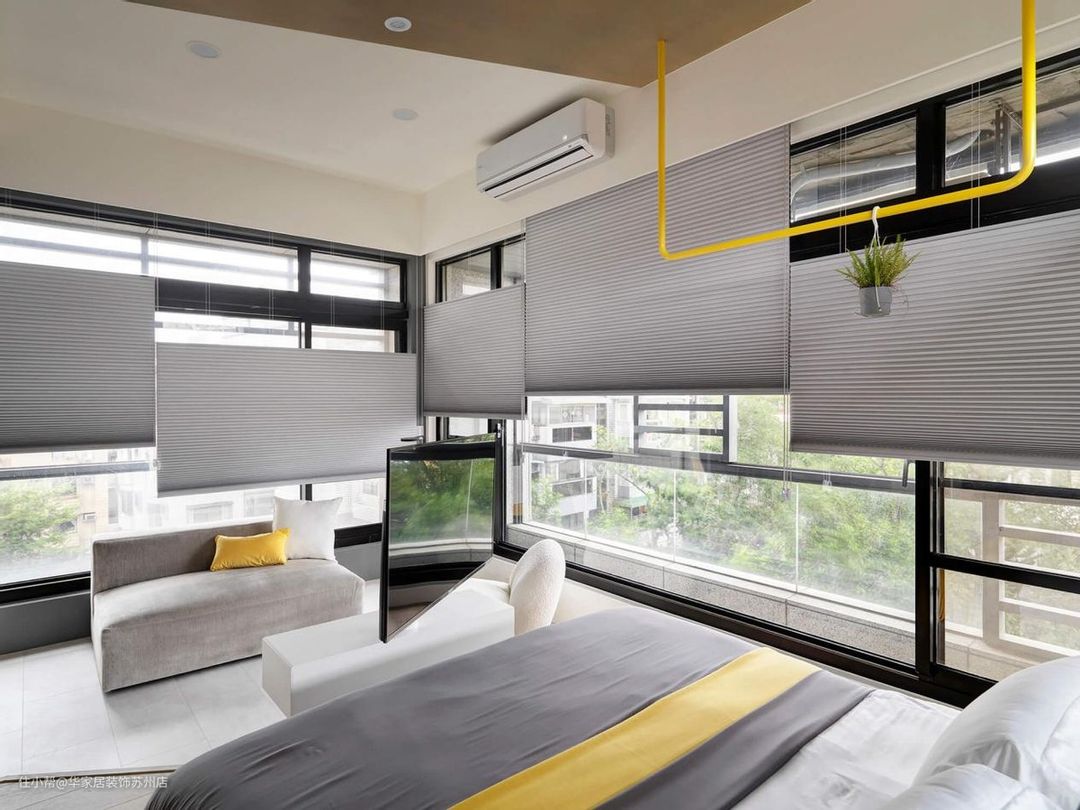- 四周增加玻璃窗设计,完美增强屋内采光。采用遮光性强的可调节式窗帘,可按需求调节屋内的采光。