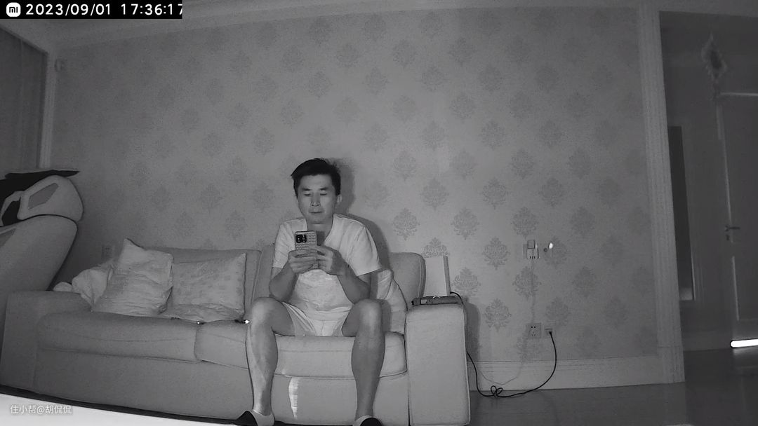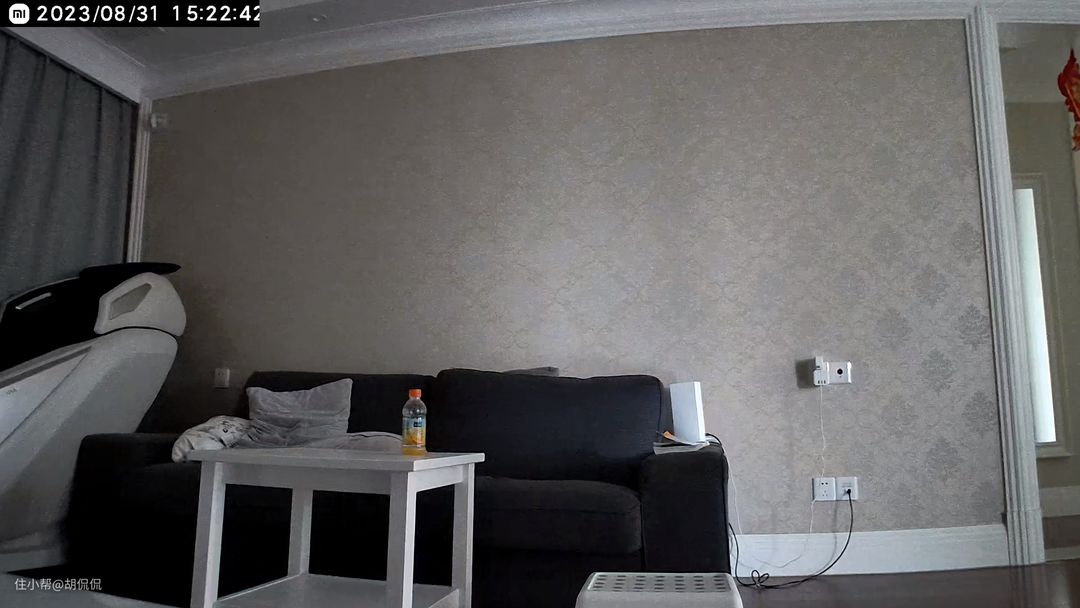 小米摄像机,垂直方向上是106°的视野。 我们看垂直方向拍摄画面,可以看到比较大一部分的房顶, 但依旧无法拍摄到摄像头的正上方,不少的垂直视觉盲区。 小米水平方向上是360°的视野。