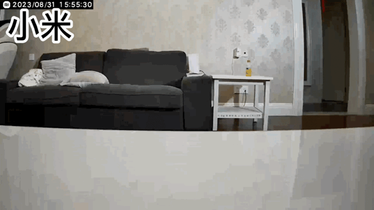 我们看小米,水平方向拍摄画面, 从画面中可以看出确实做到了360°无死角覆盖, 开头和结尾能够有一部分重合。