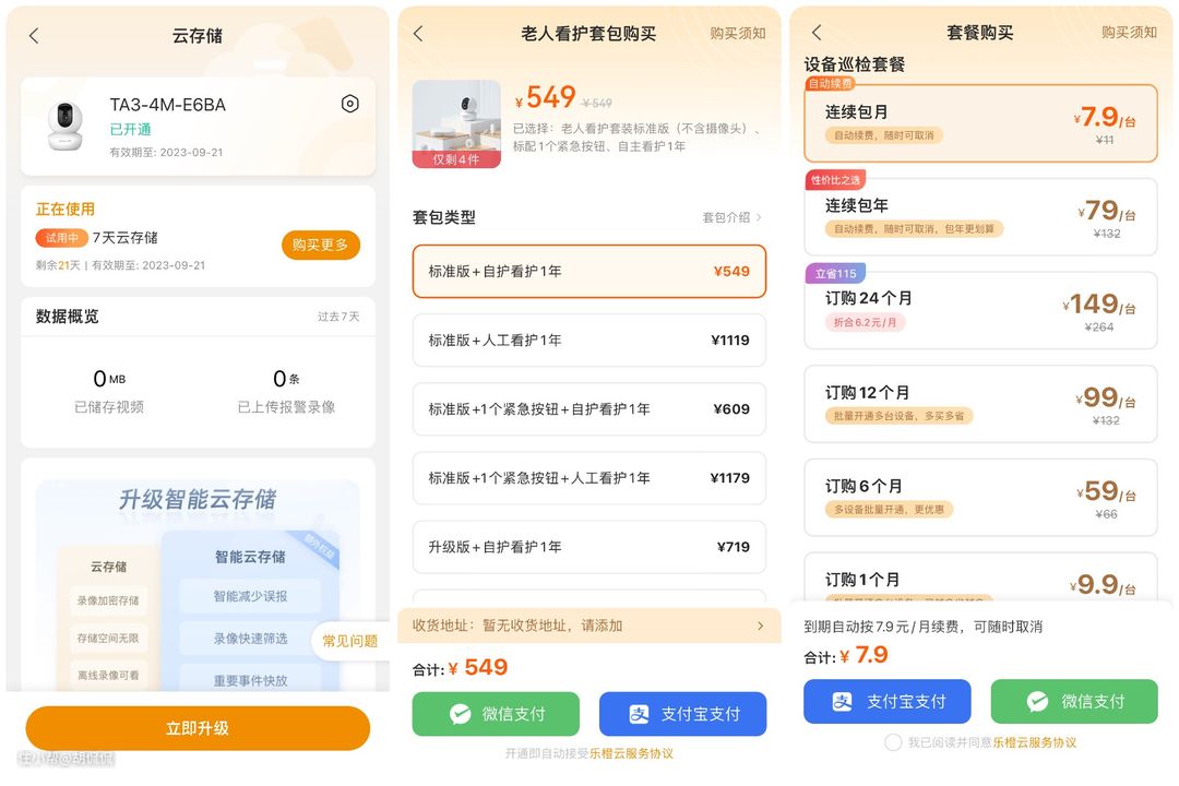 乐橙的所有额外功能都是收费的, 收费价格我觉得比机器高多了, 入门门槛低, 但后续使用费用高。