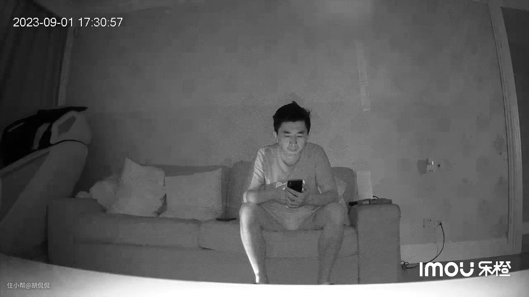这项技术就是能够利用微弱光拍摄出全彩色的画面,从而提升摄像机的使用体验。 我在房间内测试, 我将窗帘半拉上, 让少许光线从窗帘中间漏进来, 让室内有少许光线不至于是全黑的环境。