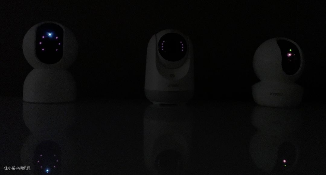 暗光环境对于摄像机的像素, 光圈大小都是考验。 同样, 还需要摄像机支持微光全彩技术,就是在微光环境下, 增强红外夜视搭配智能算法, 在微光环境下呈现彩色图像。 其中小米是支持的超微光全彩,360和乐橙是微光全彩。