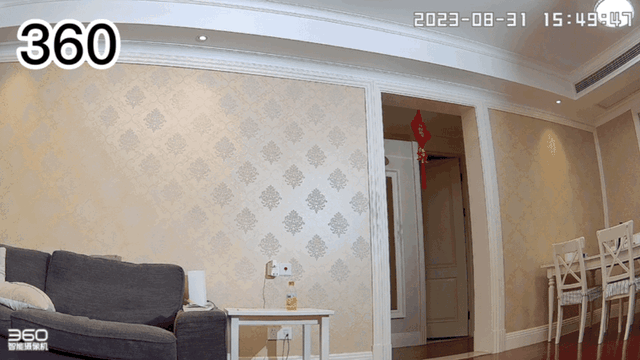 360在摄像机内内置了一个1.2T超高算力的AI芯片, 可以实现儿童哭声监测, 宠物监测, 人形监测。 我们从前面测试的移动侦测上面可以感知到, 360对于移动物体的响应速度很快, 而且人形识别很准确, 如果发现了异常侦测, 也会向手机发送警报推送, 通过APP提醒主人家里当前的情况。
