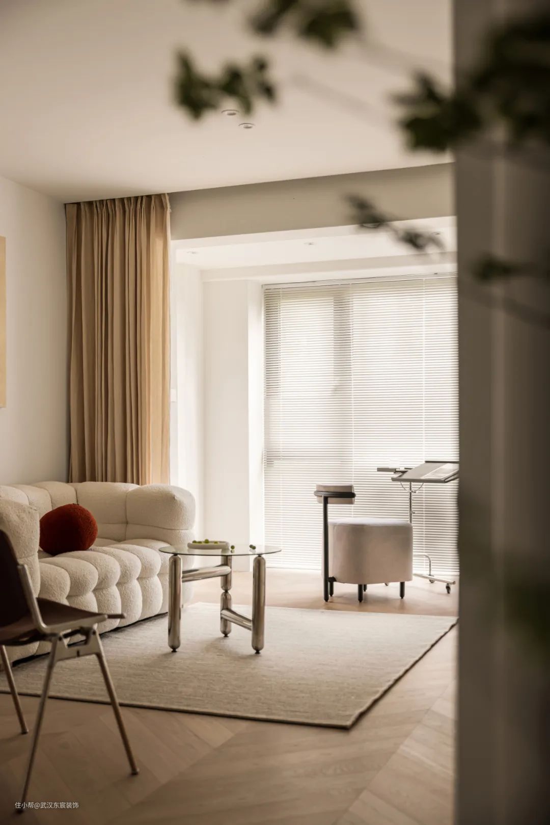 侘寂风,可能是近期最流行的奶油风,除了配色柔和,整体装饰也非常佛系,受很多年轻人的喜爱。