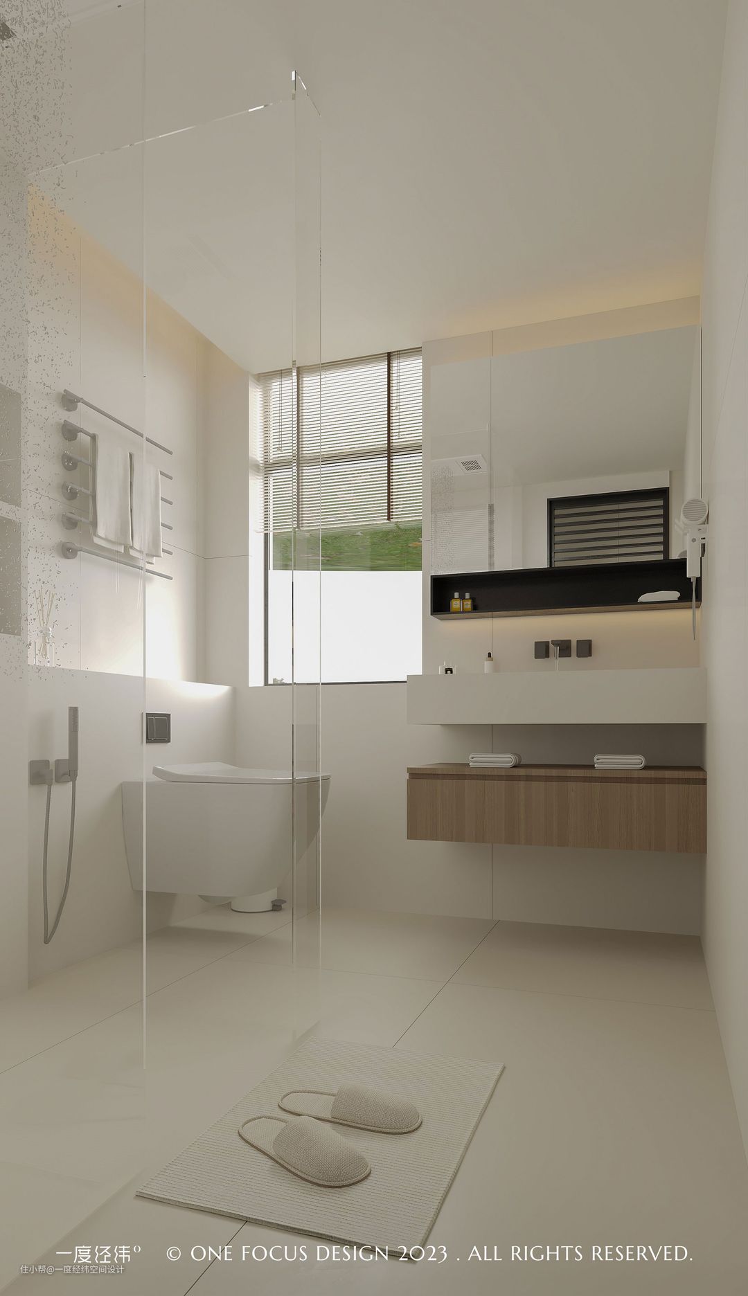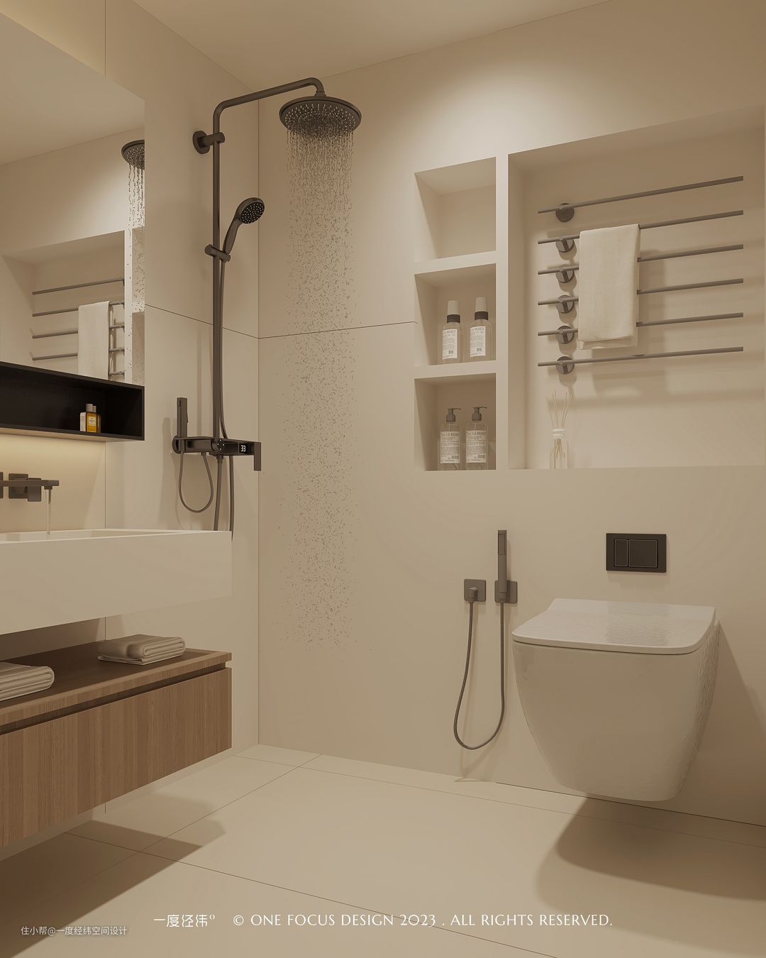卫生间用洁净的纯色和材质来体现现代简约的风格,冷静的黑灰色调不带一丝多余,满满的治愈感扑面而来。