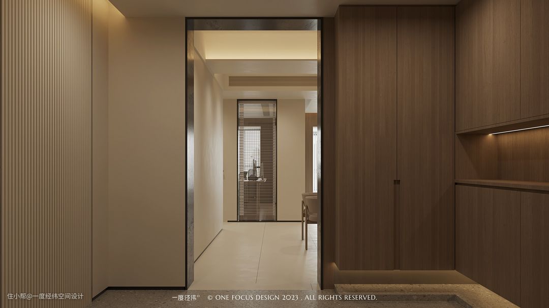 步入玄关,运用线性语言描绘空间基调,通过造型、色彩、材质与比例,在灯光氛围的烘托下,与场地环境产生某种独特的情趣。玄关调性结合功能属性,奠定了其简约现代,沉稳大气的基调,在实现内外空间气韵互通的同时,也生动诠释出生活收纳与品质美学。