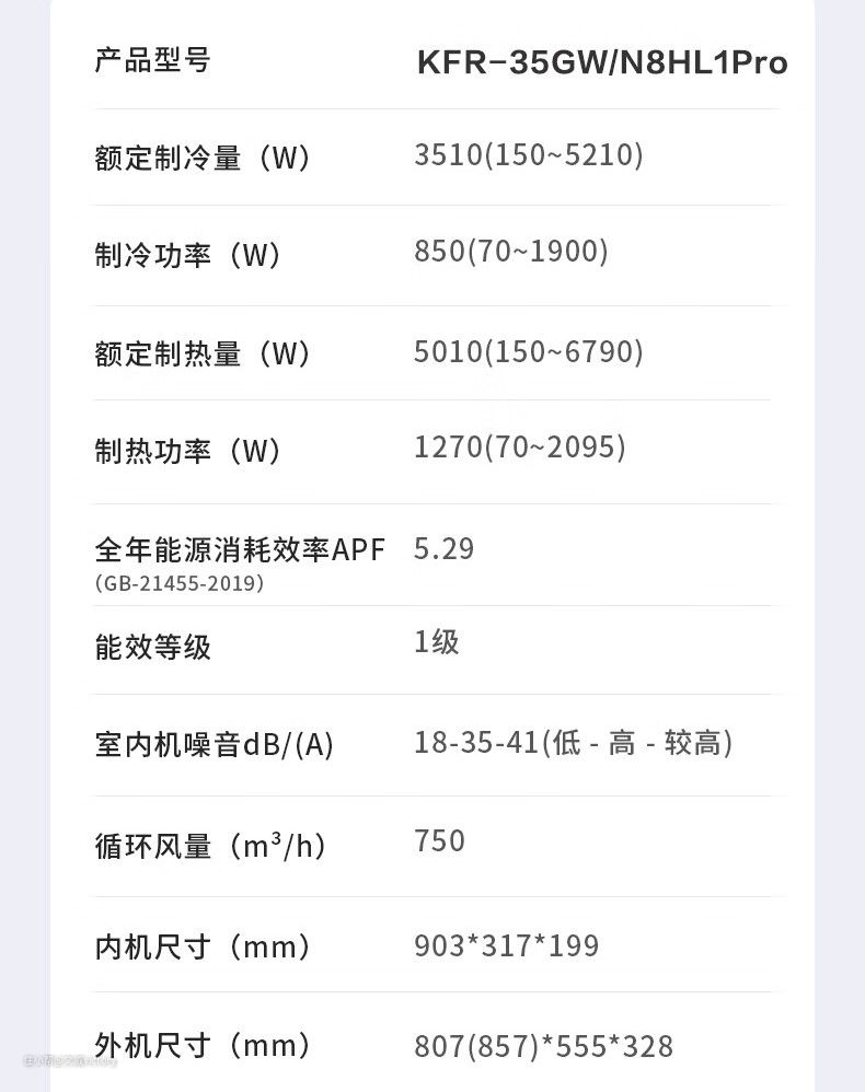 35N8HL1的噪音控制我觉得比较好,因为大尺寸风轮+大蒸发器,维持同样的冷量它的转速相应会降低,风噪自然就更小。