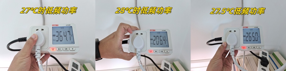 设置制冷27.5℃,不拉窗帘低频功率维持这在250w左右;