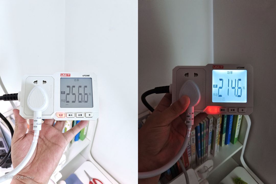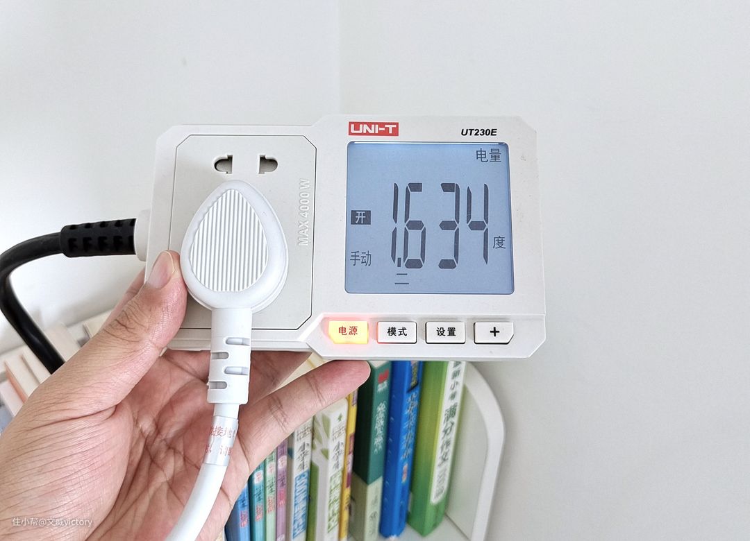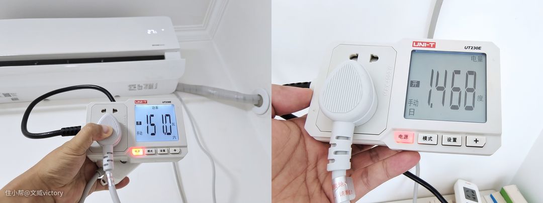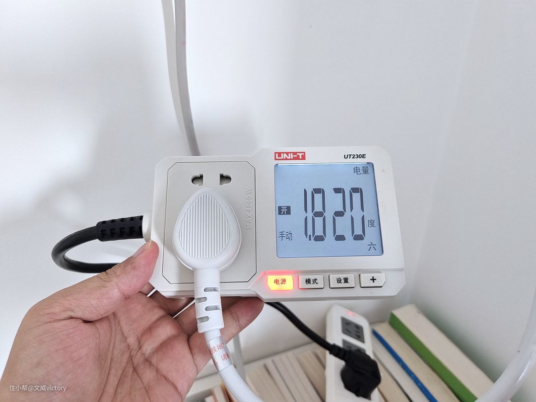 测试时间8月5日10点——到8月6日9点,设置制冷27.5℃,运行11小时耗电量是1.468度。
