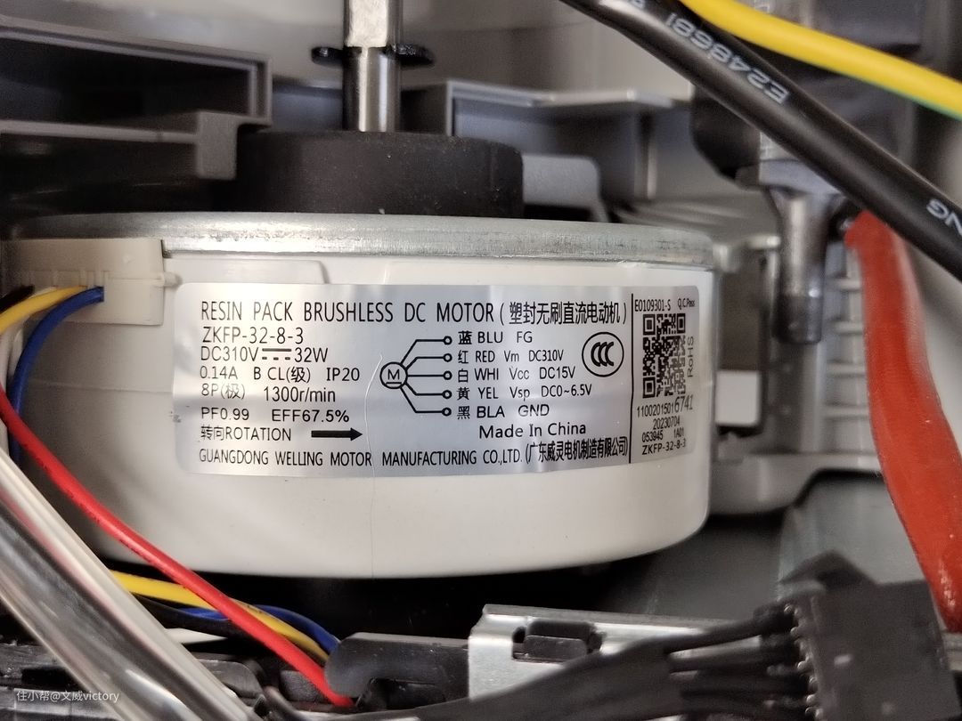 内机采用的是美的华凌自家的威灵直流变频电机,功率是32w、最大转速1300转。