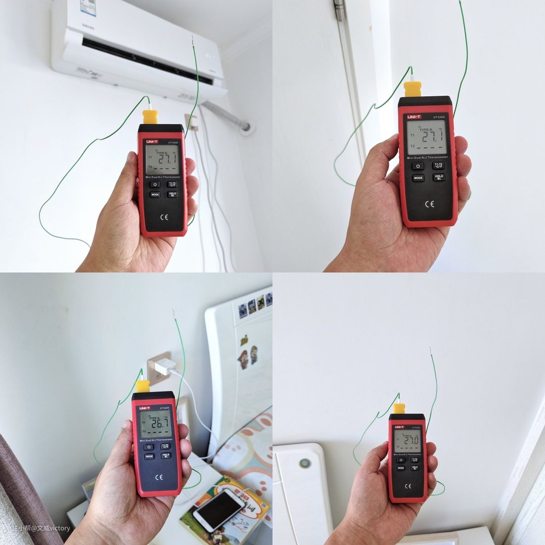 空调正对面两个角落的温度分别是26.7℃、27℃。