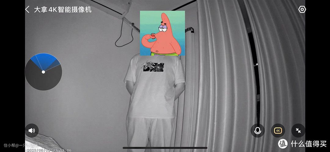 夜视功能:大拿摄像头搭载了星光级传感器,同时内置了增强的红外补光灯,在晚上的时候画面仍可以实现清晰的效果。