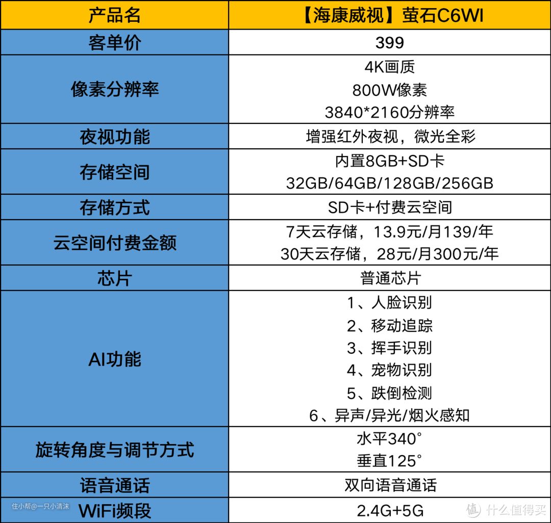 如果你个人对功能上有很强的要求,且不考虑费用问题,那么萤石C6WI确实在这个价位也是不错的选择,超清的画质+多种AI智能满足不同的需求,婴儿看护方面可以首选。