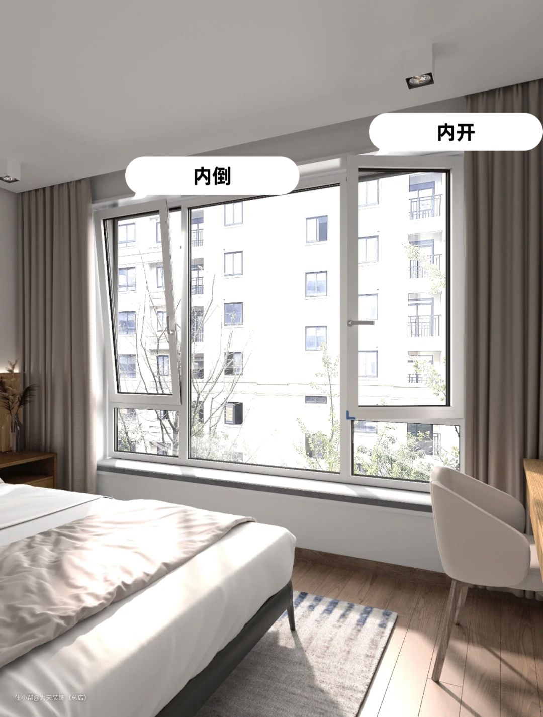 内开内倒是使用家庭较多的一种,适合通风条件好的高楼层。高楼层虽通风好,但遇上风沙大时,开一天窗户屋内厚厚一层灰尘,这种情况适合采用内倒开窗方式,既保障了通风效果,又不会大量吹进尘土;若想快速通风时,只需转动把手改为内开方式即可,十分方便。