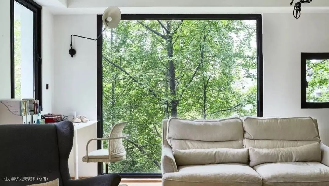 出于性价比考虑,可以适当增加窗框将玻璃缩小,也就是将大面积玻璃划分成几块,虽然无法媲美无窗框落地窗,但效果也是十分不错的。不过要注意窗框选择竖框,即只左右分隔玻璃,不上下分隔,否则便失去了落地窗的意义。