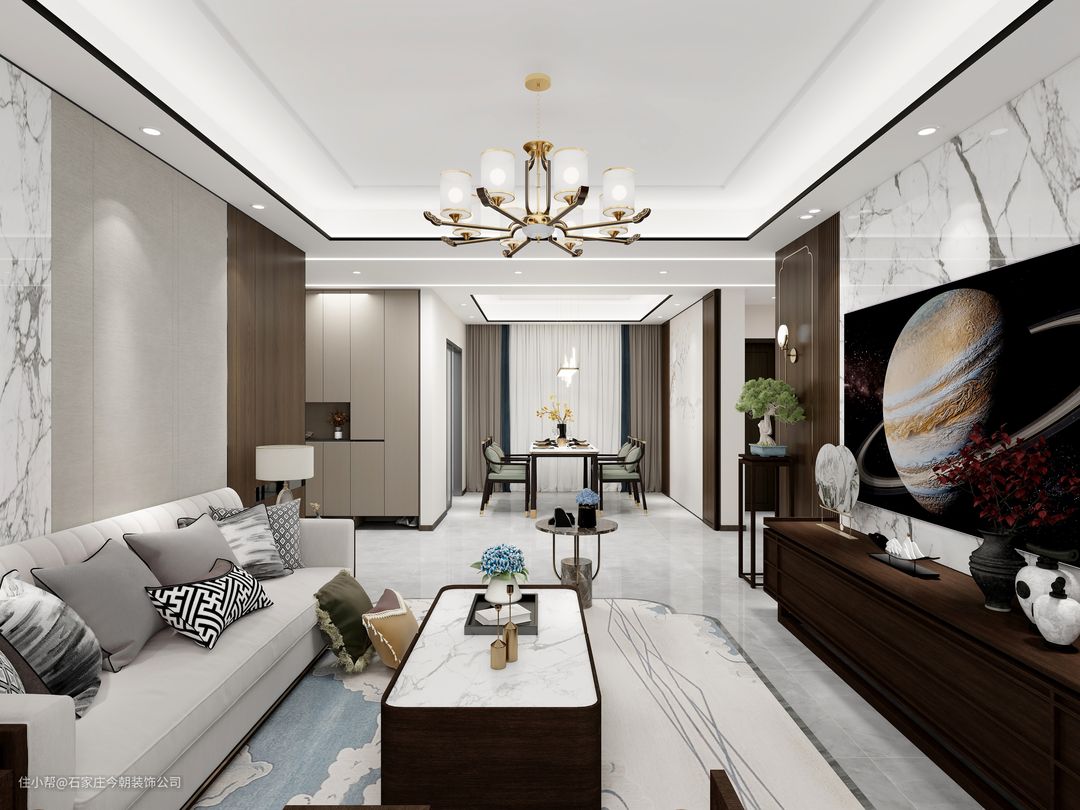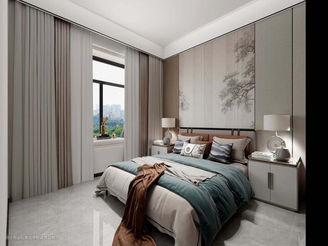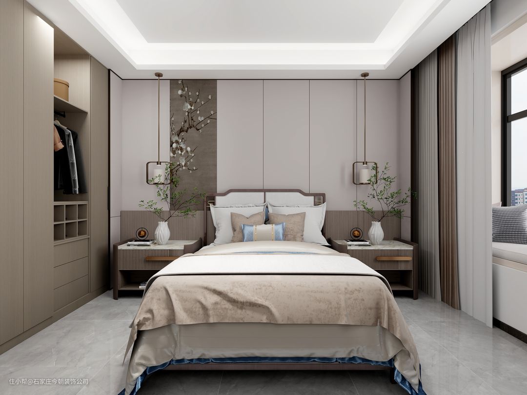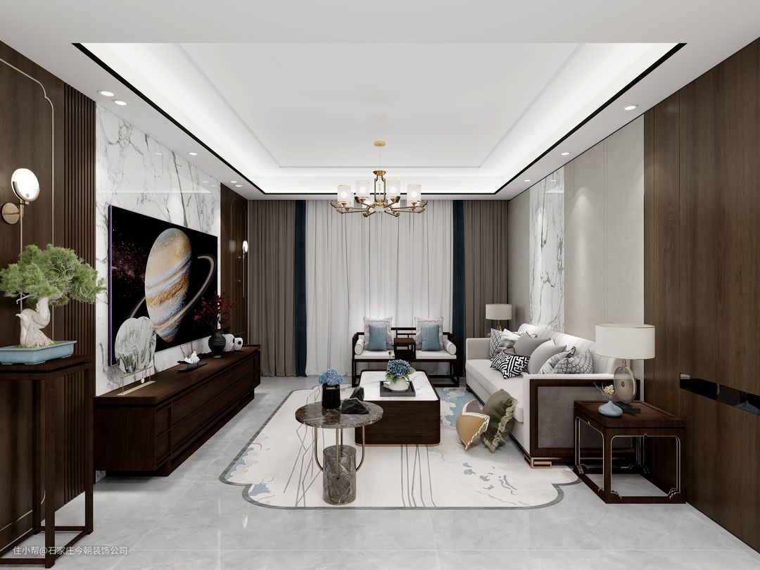 新中式在色彩搭配上,将现代审美和传统文化相融合,取其神韵,舍其繁琐,不但呈现出十分浓郁的东方情调,也更符合现代人对简约轻奢生活的追求,造就了一幅气韵生动的水墨写意,复古之余更显时尚魅力。