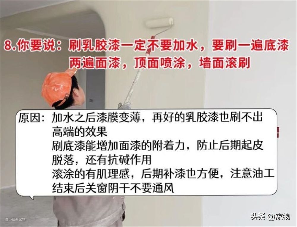 我是建议大家,在油工师傅刷墙之前,提前给他交代好这9个注意事项,别聊别的,直接说完这9个交代,想必油工师傅会懵一懵,缓缓道出一句:“你比我还明白呢”。