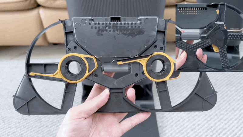 拖布外扩的设计灵感来源于人工手动擦地,属于「仿生」设计。除了在沿边清扫中外扩之外,当扫地机在遇到桌腿等位置时,也会「伸腿」使拖布尽量更加靠近家具,从而减少清洁死角 ▲