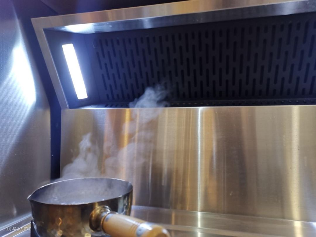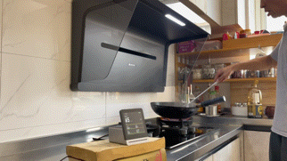 而这次我给父母家换款米家净烟机S1,可以看到在爆炒时的油烟是呈螺旋状被吸走的,吸烟速度很快,因此整个过程完全没有任何外溢。