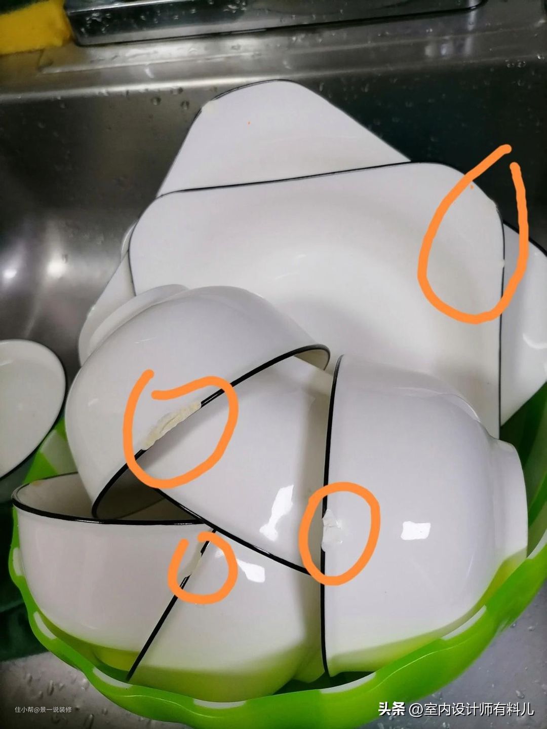 有缺口破损的碗碟还存在以下这几个问题: