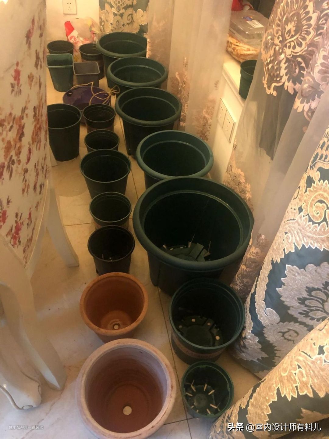都是当年放室内的,还有乱七八糟各种盆和托,浴室一堆,阳台还一堆,太占地方了,准备全部清理掉了。