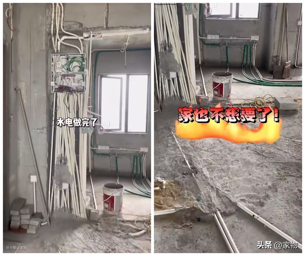 一位90后的姑娘,就找了父母的朋友来做水电,虽然很多人都再三科普别找熟人装修,但她还是义无反顾,最后这效果……只能说装完了,家也没法要了。