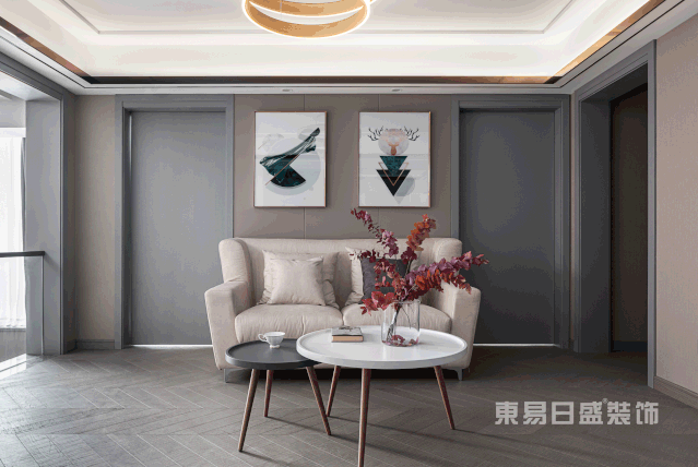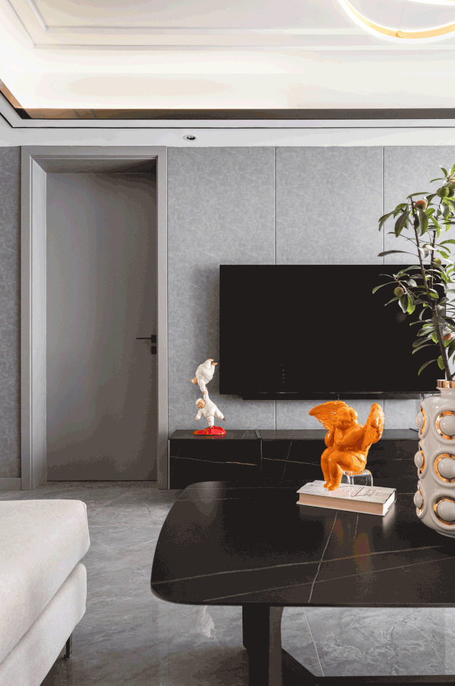 灰色、咖色、白色、黑色是整个洋房的灵魂搭配,给人营造强烈的视觉冲击。家具强调功能性和美观度,空间线条、色彩、配饰简洁流畅,营造出舒适美观的现代家居生活。