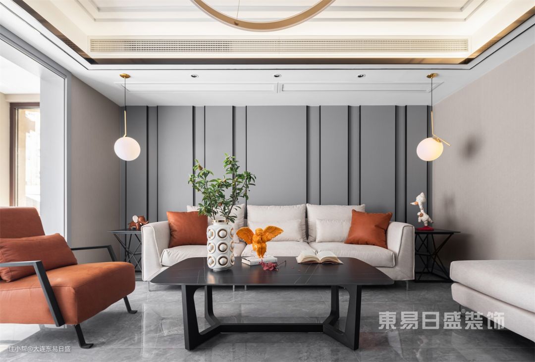 以灰色为主色调,少量加入爱马仕橙色、橄榄绿色作为点缀,营造出时尚自然温馨空间。中性色的基底下,无需过多的装饰点缀,不同的色彩为各功能区带来丰富的视觉效果。