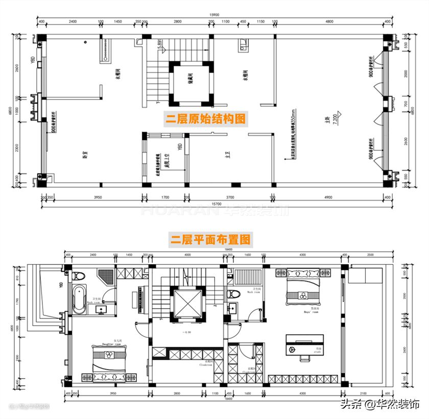 二楼是两个孩子的房间,都是以套房的形式设计;