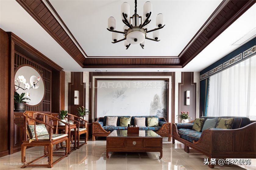 整个空间方正大气,充满现代大方与中式端庄的档次感;