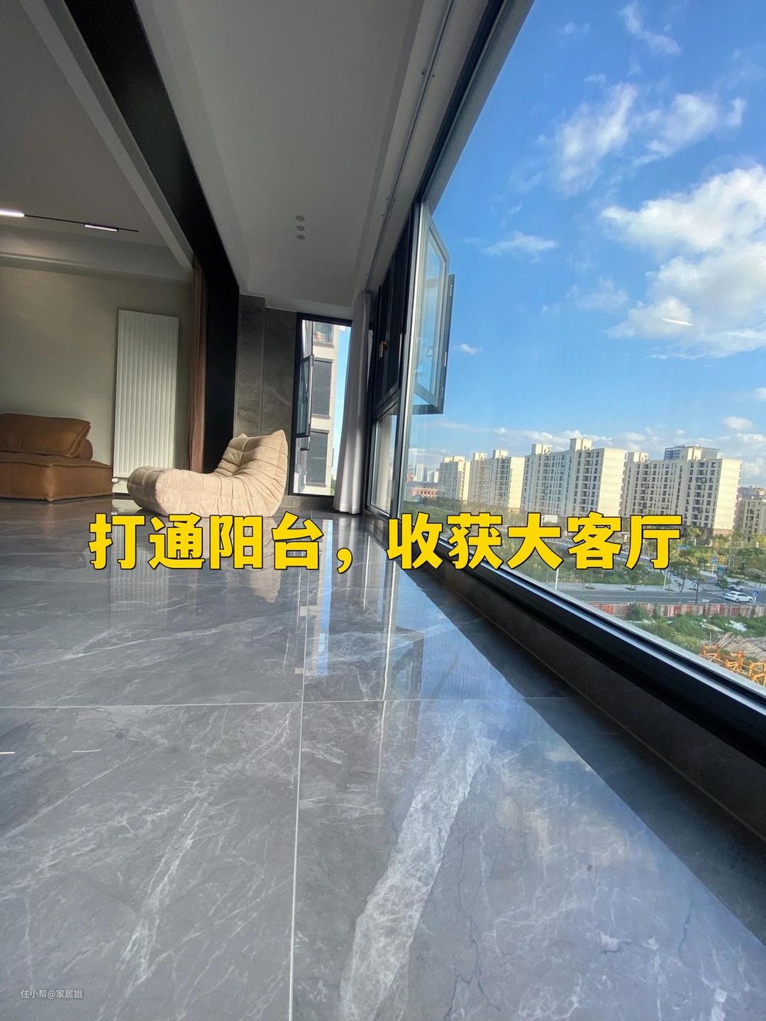 (后来才知道打通阳台后空调与暖气的影响并不大,还能收获一个大客厅,视野通透,通风与采光都会更好,太后悔了)。