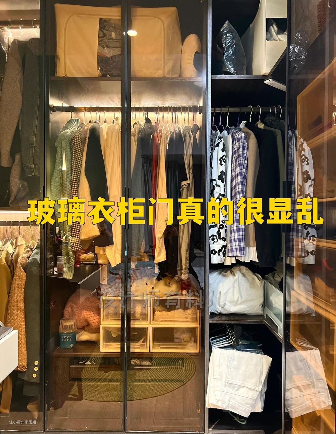 理想是达成了,结果入住后就是大型翻车现场,真是欲哭无泪啊!只能说我没有收纳师的整理能力,我家衣服放在柜子里一点也不高级,我真的整理过了,但是太显乱了……