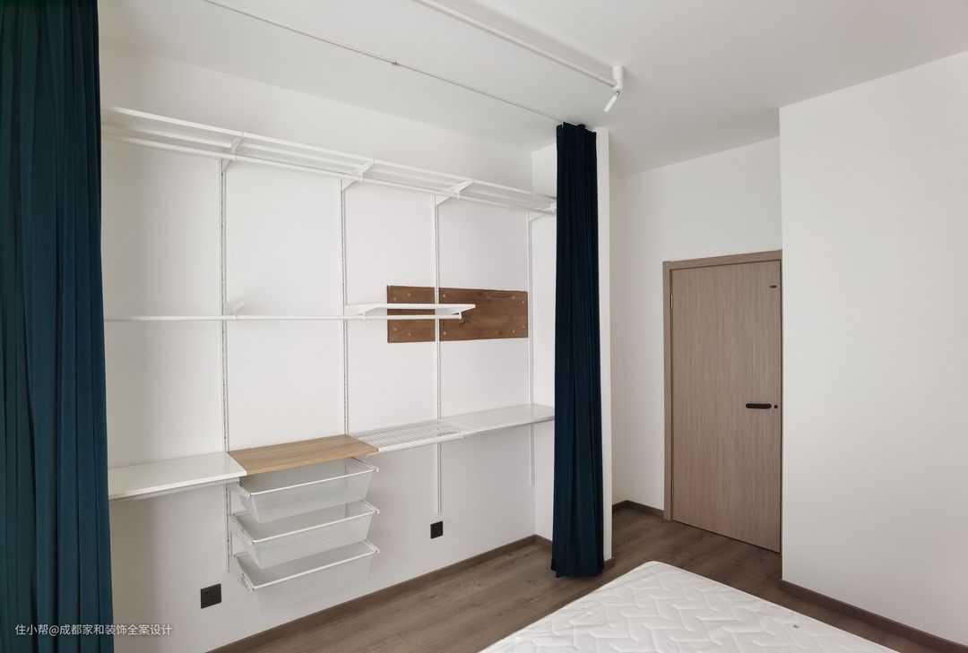 如果想要特别一点的设计,还可以将悬空衣柜作为隔断使用,保持通透的同时,又能增加空间设计感。