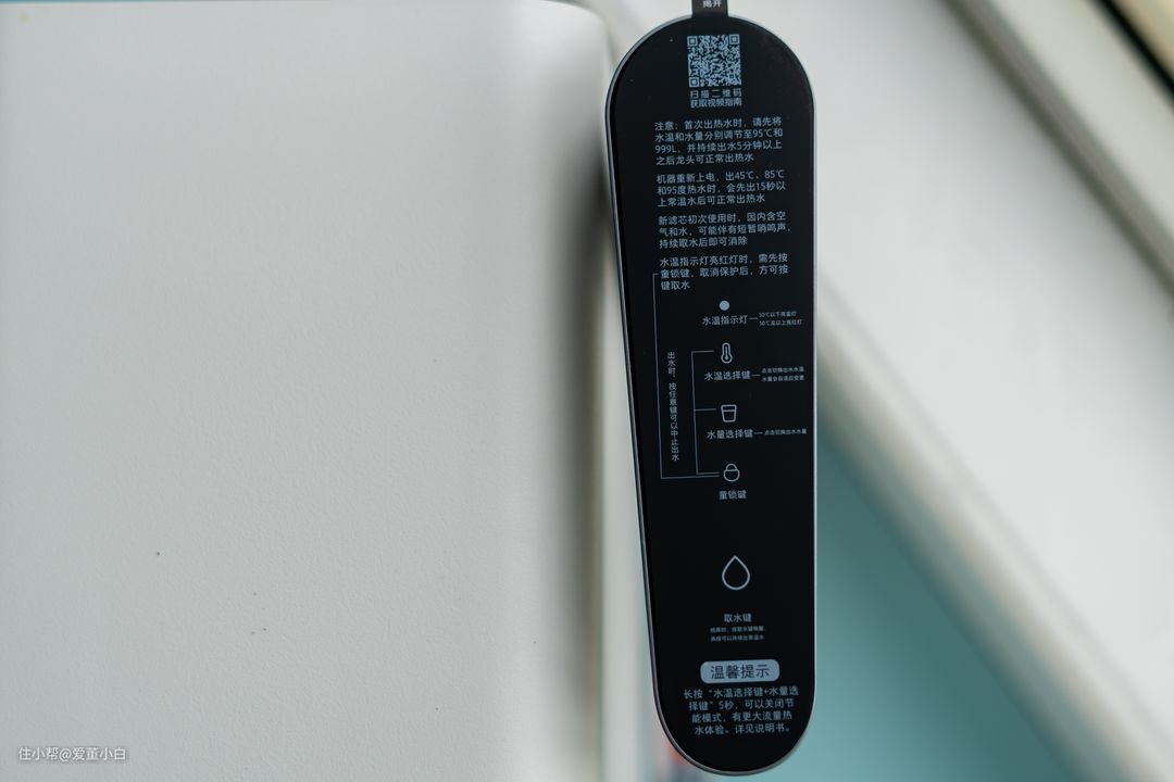 ▲▲龙头采用的是玻璃面板,比较贴心的是有使用指南贴在上面,还有视频指南可扫码观看。