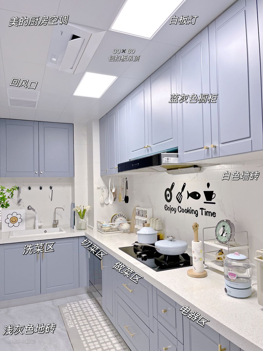 基于全屋装修色调(冷色系),厨房的色调定为了:蓝灰色