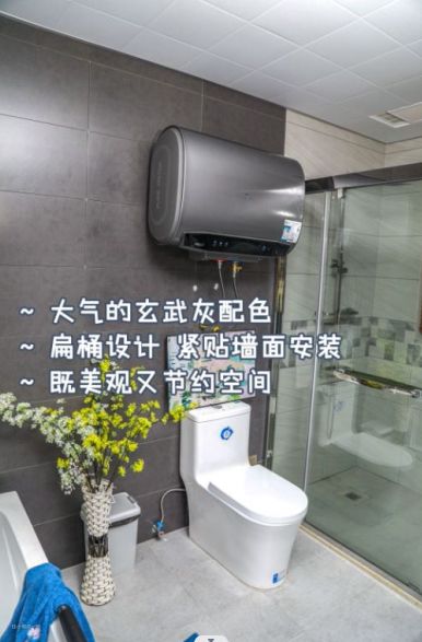 超薄扁桶的设计,搭配上科技感十足的玄武灰色调,就像一个高级的装饰,使得整个设计看起来很有品位,一下子就提升了卫生间的格调。因为它纤薄小巧,所以在布局上也非常灵活,可以适应不同卫生间的布局,像安装在马桶上方、马桶对面、淋浴区,或者半嵌入式安装都是可以的,不管放在哪里都不突兀。