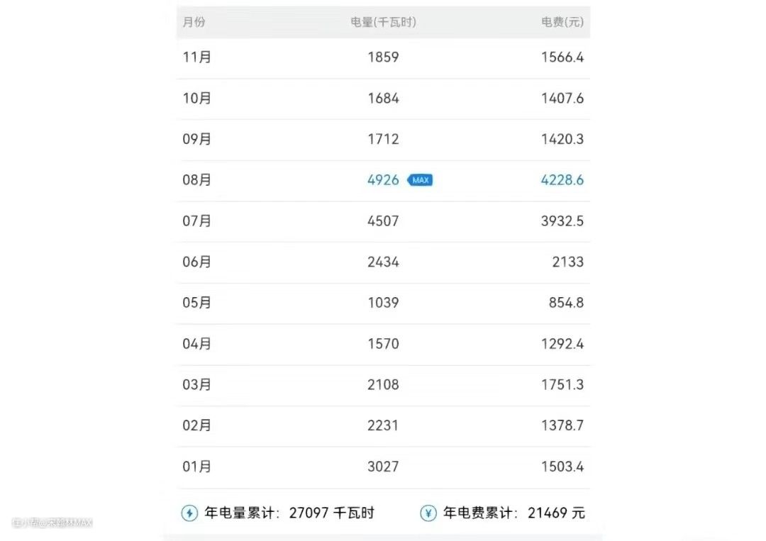 可以看到,七八月份最热的时候,我家电费平均每个月也才三百多,并没有传说中那么夸张。