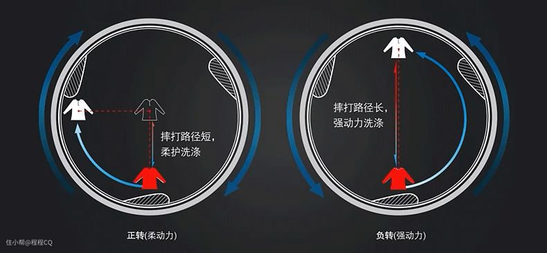 波轮洗衣机是利用正反向动力设计带动衣物和水一起来回转动,通过衣物间相互摩擦、衣物与内筒壁摩擦达到强效去污渍的效果,就跟平时手动使劲搓洗衣物差不多。