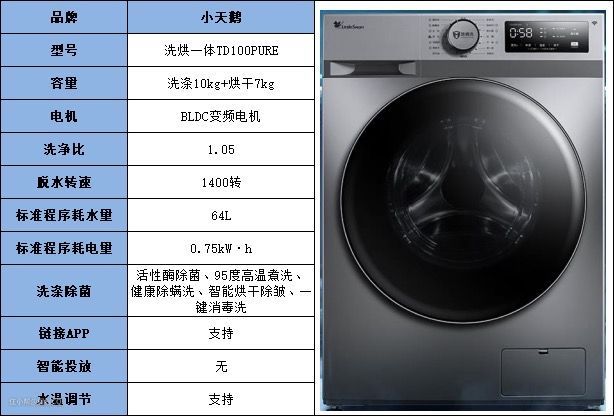 这款是支持洗烘一体的基础款产品,除了母婴级巴氏除菌洗功能外,增加了空气洗、智能烘干功能,10公斤的大容量+7公斤烘干容量完全能满足日常需求。空气洗主要利用360度循环热风穿透织物带走火锅味、油烟、霉菌味、烟味等,让衣物清新换新。内部搭载NTC传感器,智能感温烘干衣物,随洗随穿,共支持16种洗烘程序,洗衣烘干很方便。