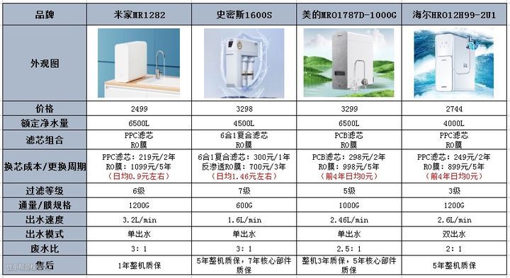 四、4款反渗透净水器测评对比
