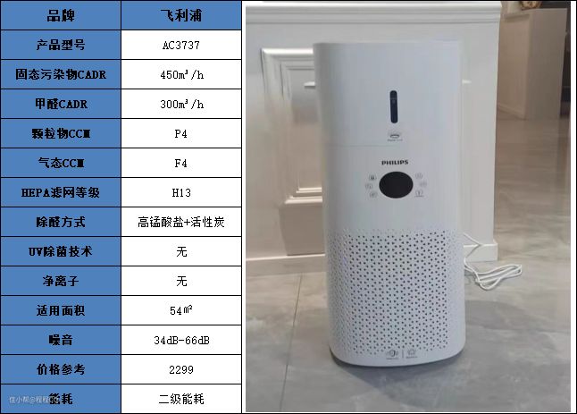 飞利浦AC3737主打50平方米的小户型使用,CADR值表现一般,达不到全屋净化的效果,但对于租房和学生党比较实用。
