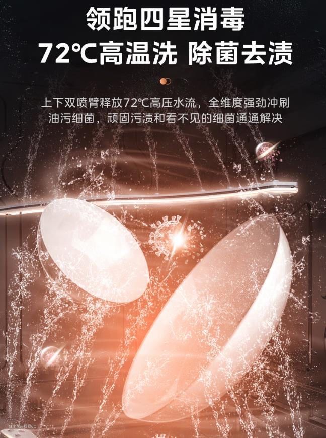 美的XH06采用上下双层喷淋方式,喷淋臂水压比较大,能对上下碗篮进行360度全方位无死角高压冲洗;搭载72度高温煮洗能强力软化油渍和杀菌,再顽固的污渍在高压和高温的不断冲洗下,也只能败下阵来。