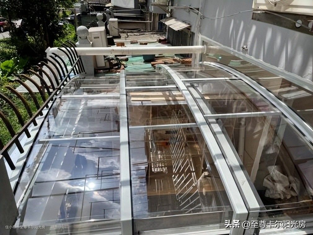 而它最大的优势其实是抗冲击性,这点玻璃可比不了。4mm 以上的耐力板能够承受大型冰雹的冲击,完全不用担心板材爆裂的问题。尤其是一些一楼住户,担心楼上杂物掉下砸坏玻璃的,就可以搭建用耐力板(聚碳酸酯板)制作而成的移动阳光房顶,完全不用担心有安全隐患,既不会自爆,也不会被人为砸坏。
