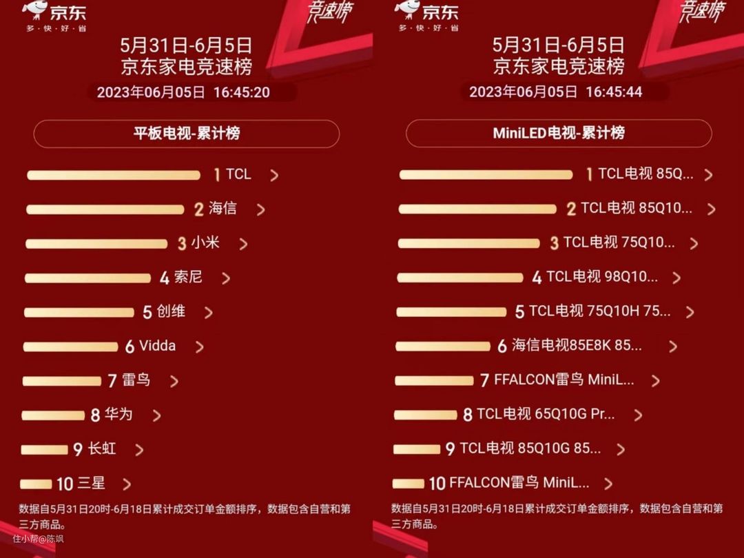 TCL也是在刚刚过去的618里拿到了电商电视销量榜第一,在MiniLED电视销量榜单前十名中也有多达9款上榜。全球销量也是高达第二,因此可以说是用户用真金白银认可出来的品牌!