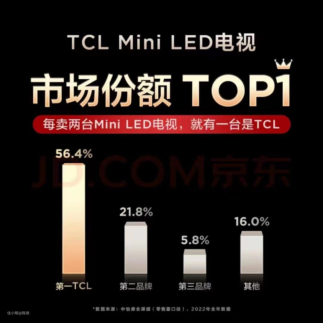 而且TCL在MiniLED领域已经是妥妥的第一名了,这种屏幕拥有比传统屏幕更高的峰值亮度、更长的屏幕寿命以及更低的功耗,是目前家用电视里高端产品必备的配置,也是最好的电视技术之一。