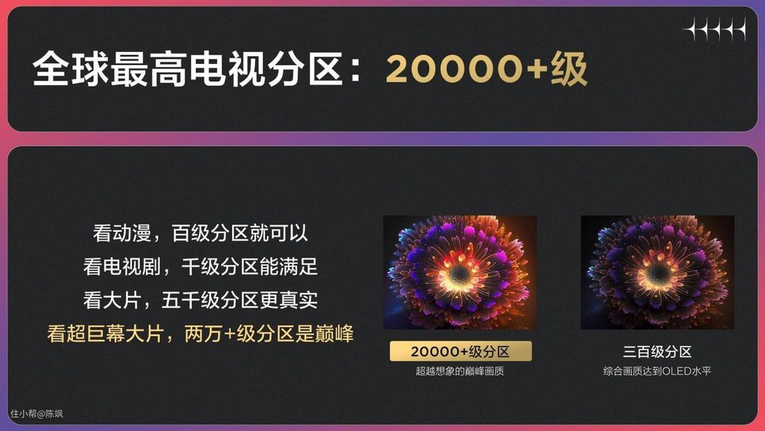 而这台电视的实际售价为79999元,说实在的这个配置已经刷新了业界多个记录,首先尺寸记录之前是110英寸,这次直接提升到115英寸,真的大上很多。其次2万+背光分区,之前拥有双5000(5000背光分区+5000峰值亮度)的X11G已经刷新了记录,这次的2万+更是非常抢眼。