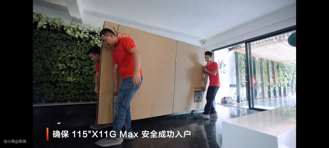 因为他炫耀的产品就是TCL刚刚发布的全球最大115英寸QD-MiniLED电视X11Gmax,先不谈这个电视的配置,只是这个尺寸就非富豪莫属了,毕竟这台电视的包装尺寸达到了惊人的2830×1793×285mm,如果你不是别墅或者双开门宽电梯的超级大平层,这台电视真的很难进你家门,就算是拆掉窗户都很难。