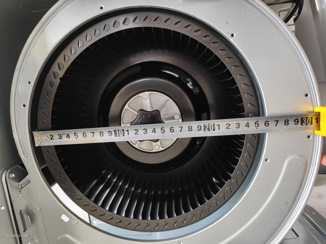 美的AC7的风机直径很大,可以在瞬间产生强大风量,最大静压有1000Pa,这数值都高了,排烟能力很厉害,可以很快地把吸走的油烟排出,避免油烟倒灌回厨房内。