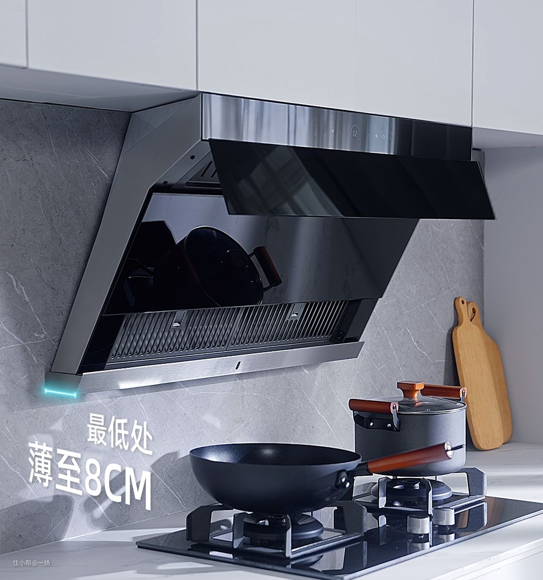 从呼吸道,皮肤、心脑血管的危害来看,油烟可以算得上是家居环境的一大杀手了,抽油烟机在厨房的地位不言而喻。但是对于现代化家庭厨房想要清新的厨房环境,显然过去的吸烟效果好已经满足不了,新时代的油烟机不仅要吸烟效果好,还有智能化和高颜值。