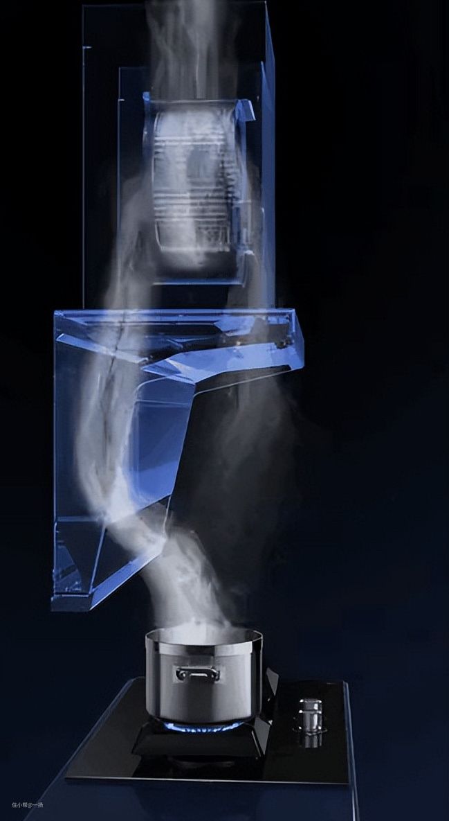 油烟机开始工作时,实际上在吸烟前的第一步是拢烟,这一步也是非常重要的,如果在油烟被吸走之前就四散的话,吸力再大也是徒劳的。